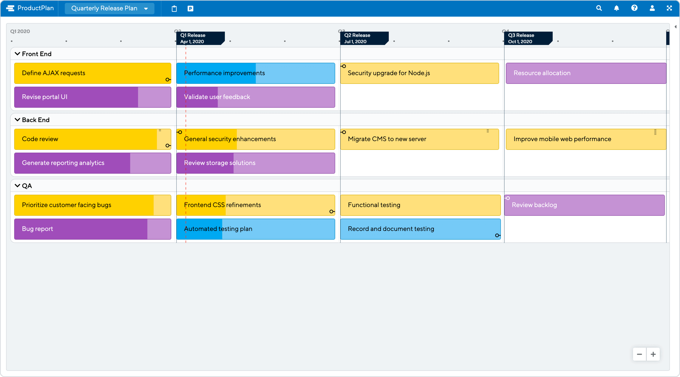 We suggest using a quarterly release plan roadmap in conjunction with (but not instead of) a separate strategic product roadmap to keep your team in the loop about what the product team is working on.