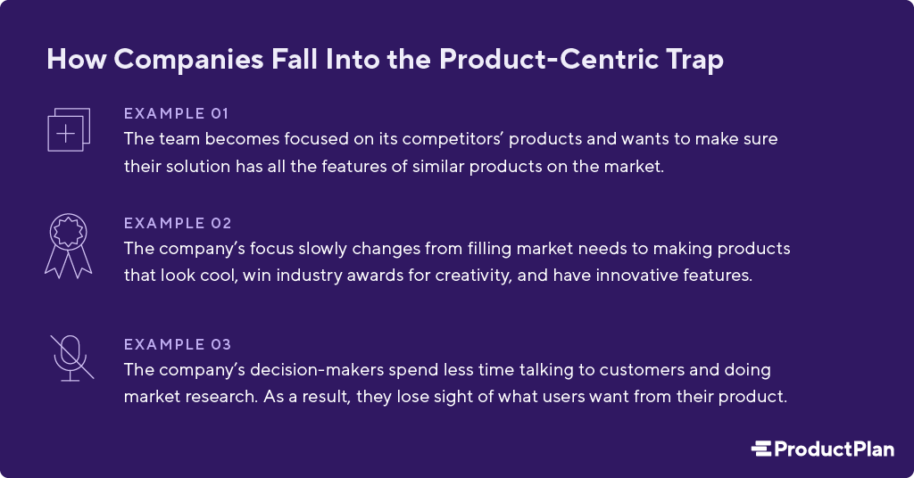 But over time, a company can fall into the product-centric trap for several reasons. Here are a few common examples.