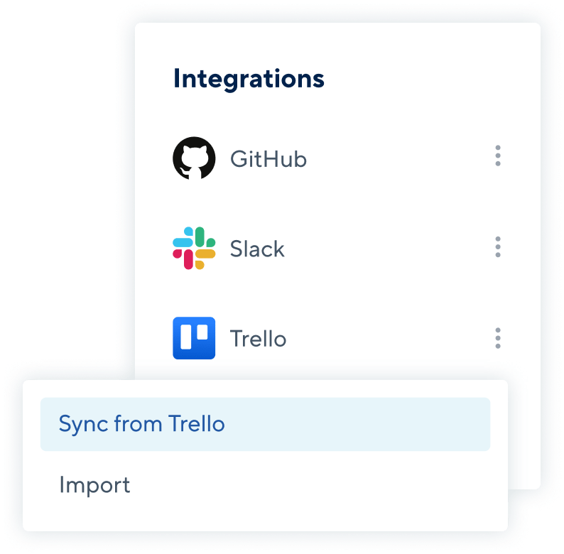 Quickly import lists from Trello to your parked bars in Table Layout. Prioritize them in the Planning Board, then add the top items to your roadmap with a single click.Sync fields between systems